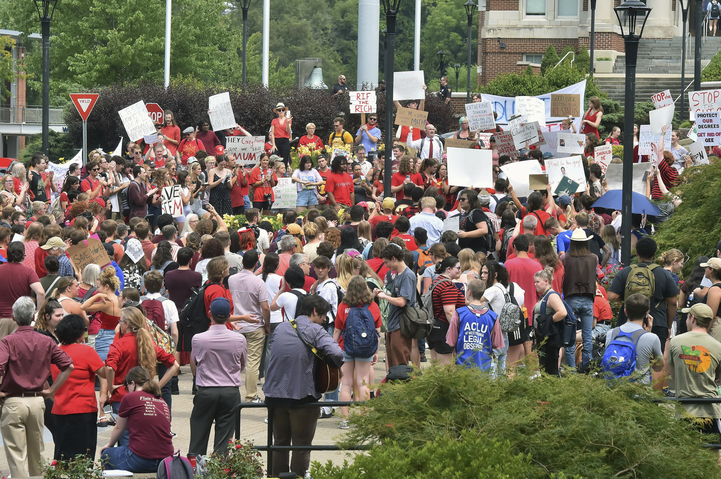 Some protesters pushed for WVU to slash administrative positions or salaries.